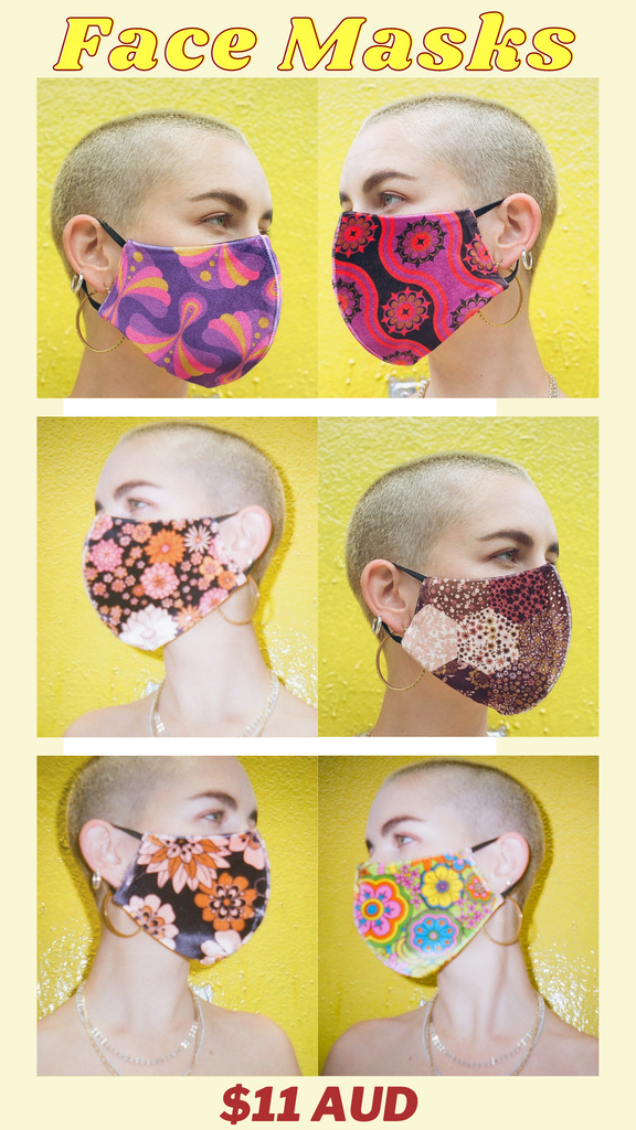 Face Masks are back in a range of new fabrics! Face Masks made in Melbourne with our exclusively designed print designs. Lined with Organic, Biodegradable Black Bamboo & your choice of our prints in Velvet.