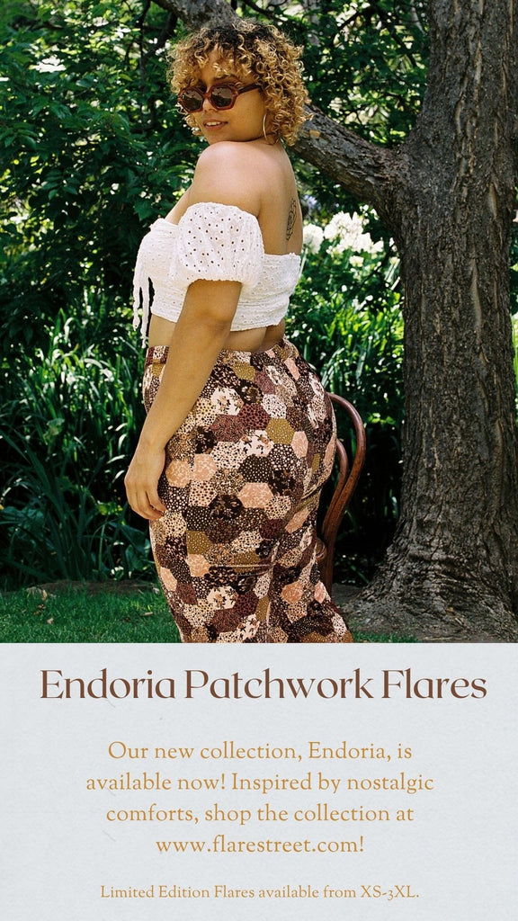 For Endoria, we wanted to create a feel of comfort, grounding and sensual connections through our textile design, warm colours and soft fabric. To be dressed up or lounged around in, you can wear these flares everywhere!