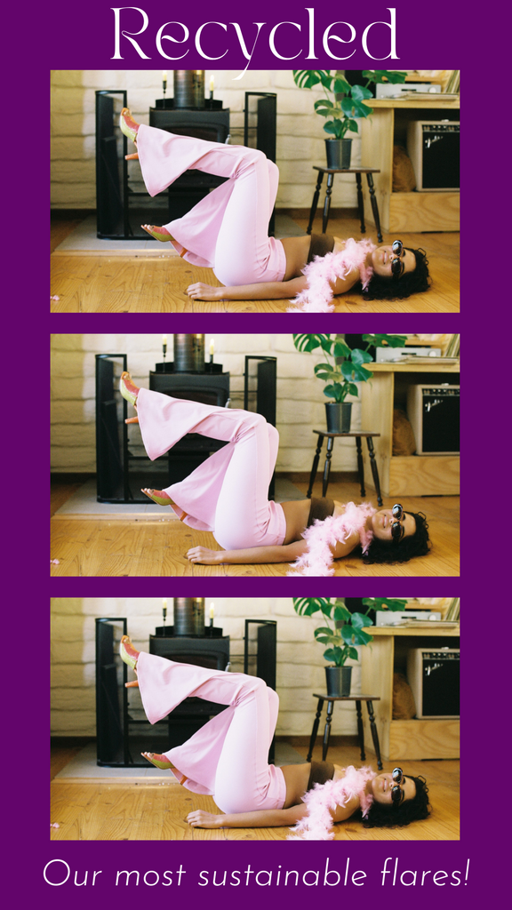 The ribbed fabric has a thin rib or chord-like texture running down the leg. They are super stretchy, even more so than our other velvet flares and because of this, they have a naturally higher waist! We hope you love our new range of sustainable flares.