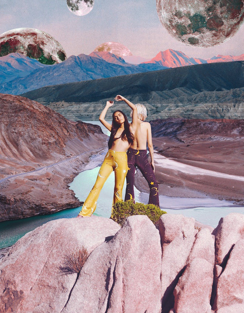 We're over the moon at Flare Street this week, absolutely in awe of this magical collage by Rosie Sayers featuring our Cosmic Velvet shoot in Joshua Tree, California.