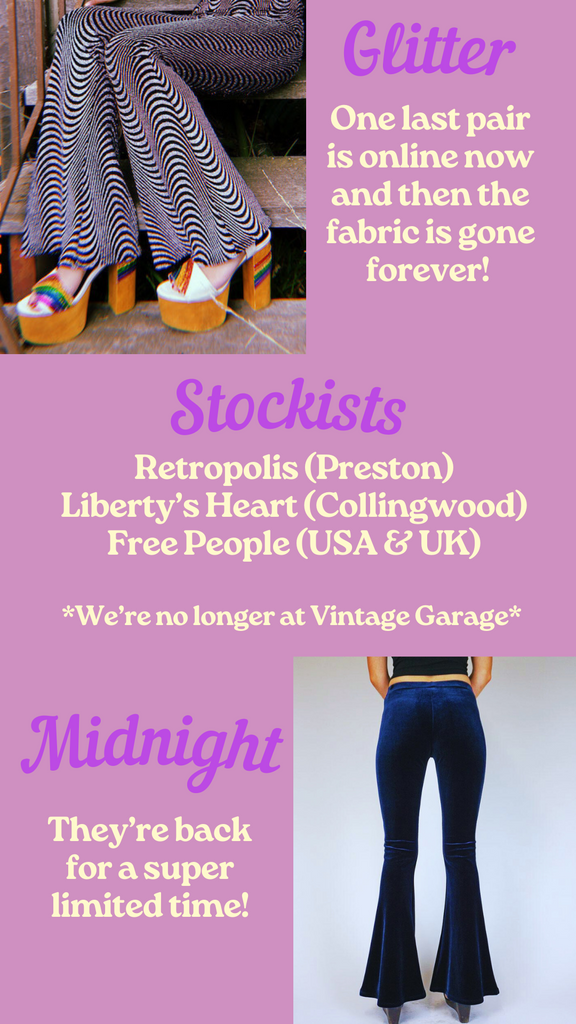 One last pair of Glitter Flares & Blue Midnight Flares are back for a limited time!