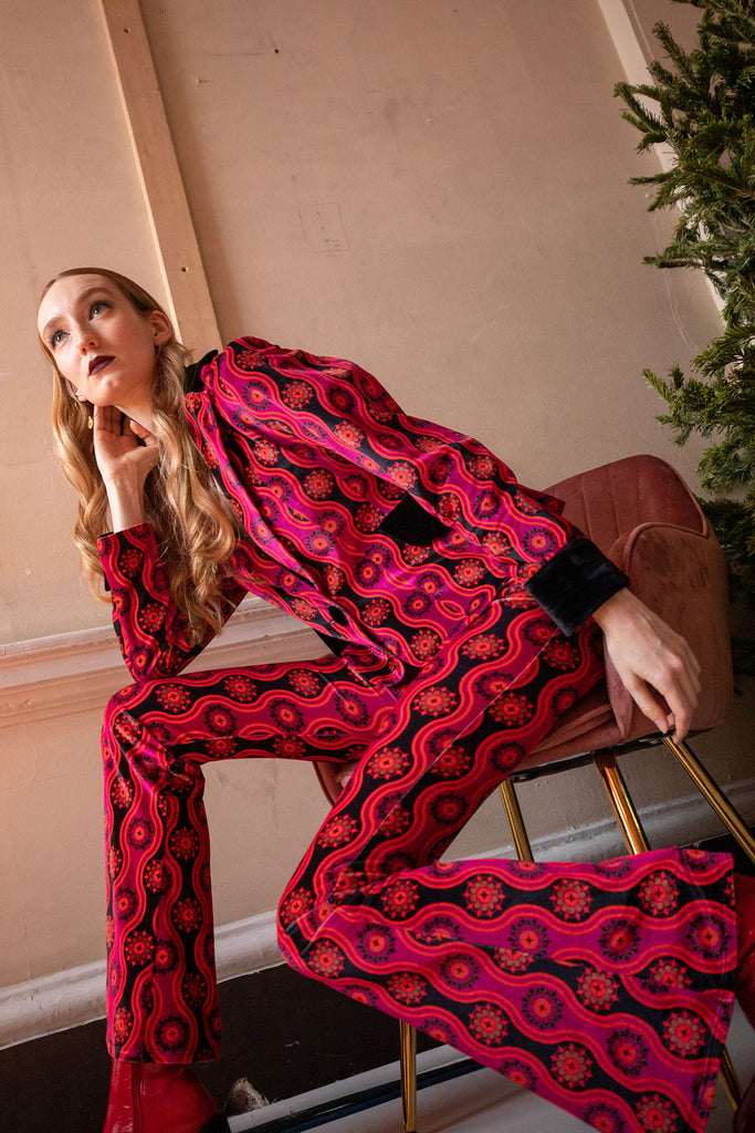 Bündchen und Fransen sind optionale Ergänzungen zu unseren Schlaghosen, Kleidern und Kimonos mit weitem Bein!