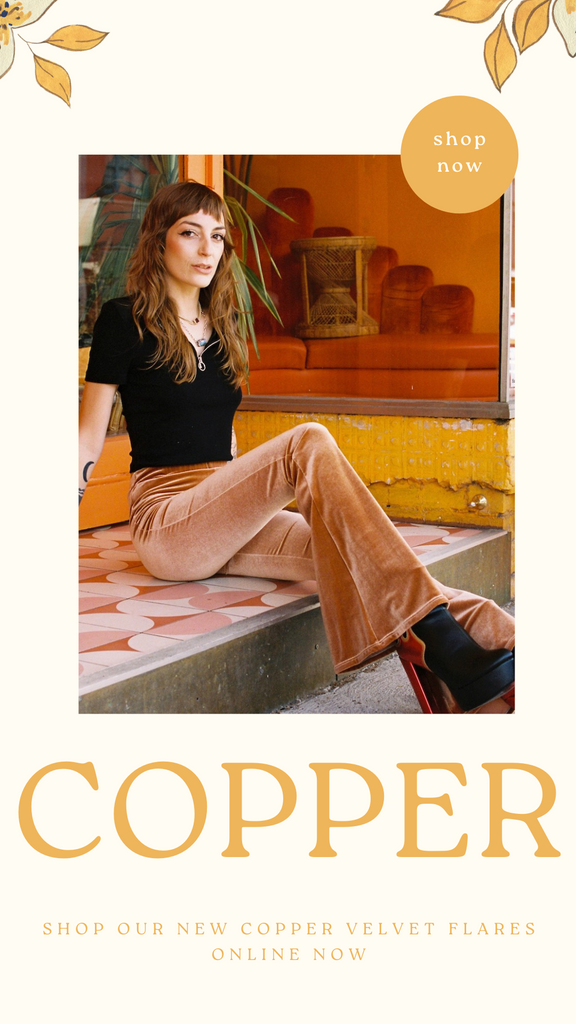 フレア愛好家に素晴らしいニュースがいくつかあります。 コッパー ベルベット フレアが再入荷しました。完璧な 70 年代にインスパイアされたコッパー ベルベットを探した後、生地メーカーと直接協力して、ベルベットをこの特別なフレア ストリート コッパーに重ね塗りしました。