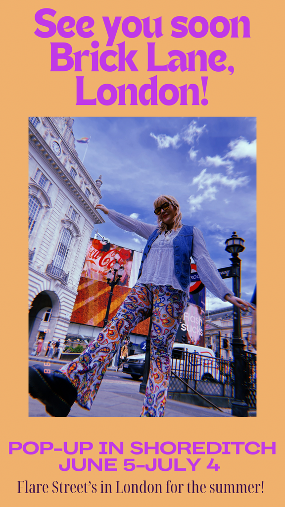 We're back for the summer, from June 5th - July 4th only! Shop our flares in real life in Brick Lane... We're so excited to be bringing some of our best selling pieces and colourful flares from Australia to you.
